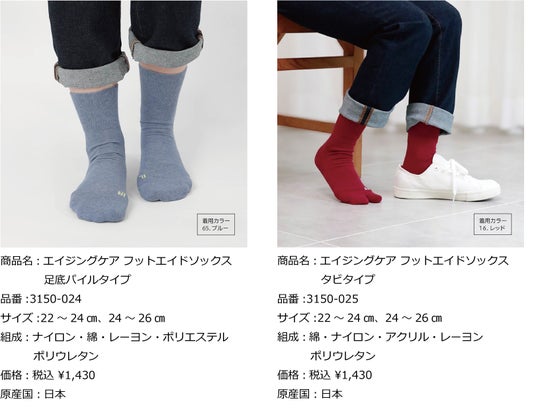 変化に着目した新商品「※エイジングケア フットエイドソックス」シリーズを、同社ブランド「み