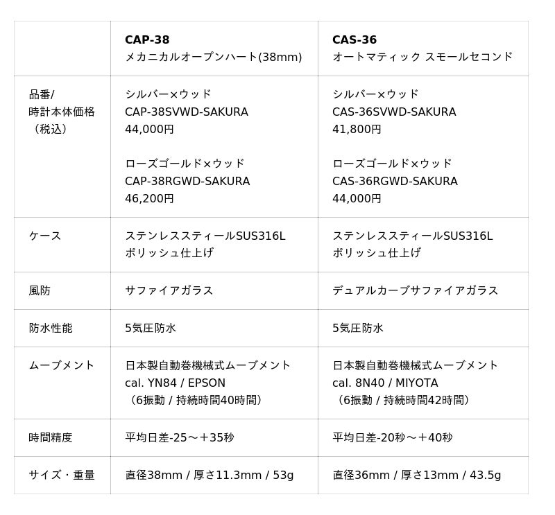 Maker's Watch KnotWood Dial Collection / CAS-36SVWD-SAKURA, CAS-36RGWD-SAKURA, CAP-38SVWD-SAKURA, CAP-38RGWD-SAKURA
