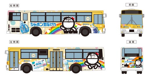 無添加石けんのパイオニアであるシャボン玉石けん株式会社(本社:福岡県北九州市/代表取締役社長 森田隼人)は、シャボン玉石けんの主要製品とシャボンちゃんをデザインしたラッピングバスを、北九州市内の西鉄バス2路線で運行開始いたします。なお、1番路線は7月28日(月)より、27・28番路線は8月上旬より、2年間の走行を予定しております。