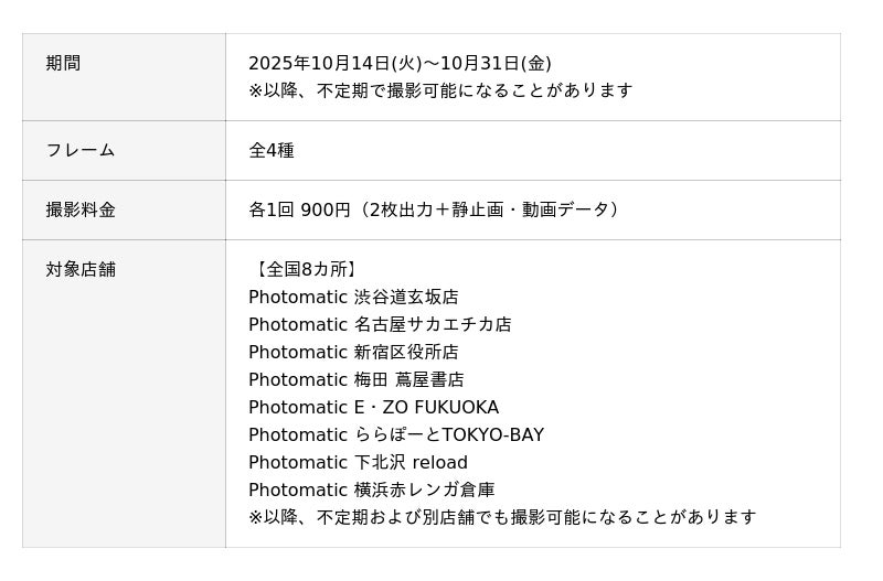 Photomatic 対象店舗 詳細