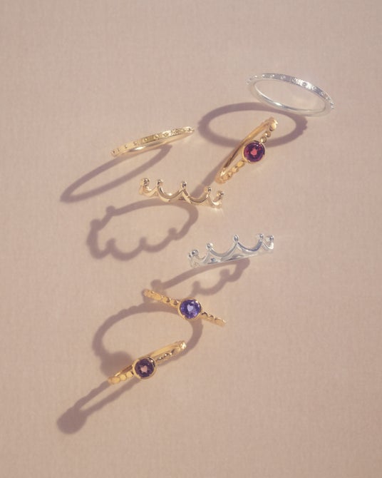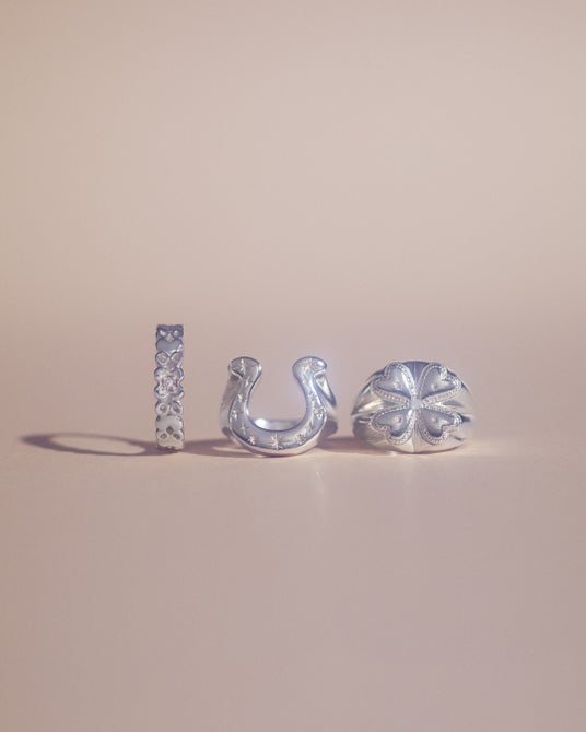 クラウンやクローバーなど、それぞれに幸運の意味が込められたラッキーモチーフたち。ゆびきりげんまんをして結んだ小指に願いを託すように、ピンキーリングに自分だけの約束を秘めて。