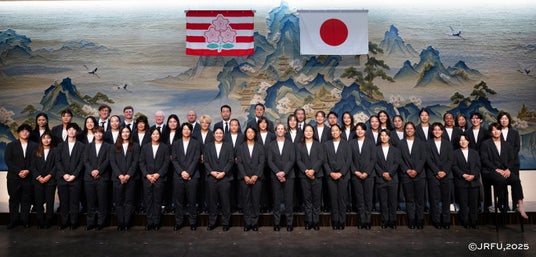 7月27日(日)に開催された壮行会でのスーツを着用したラグビー女子日本代表メンバー