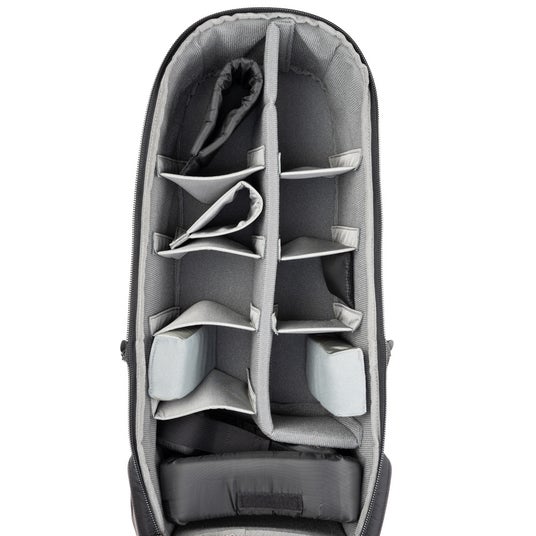メインコンパートメントは深みがある大容量の機材収納スペースを備え、ディバイダーは取り外し、付け替えが可能です。
