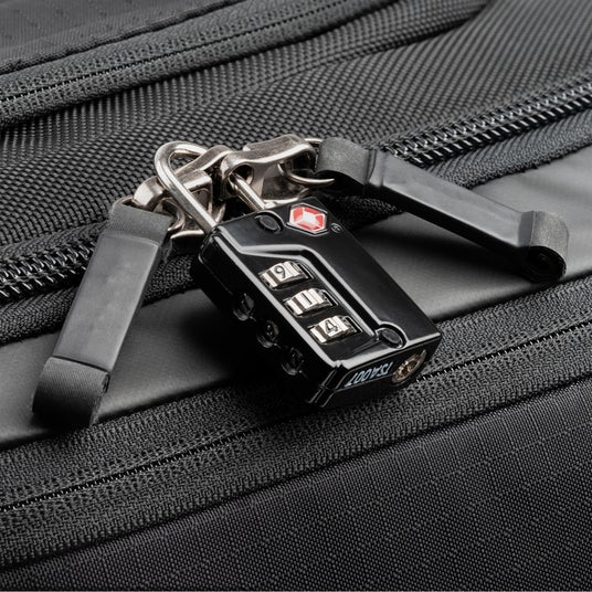 また、荷物をたくさん詰めた状態で持ち上げたときなどに誤って開くことがないように、上部には38mmアルミニウム製セキュリティフックが付いています。