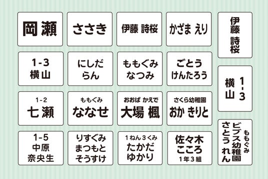 『毎日のお仕事や育児に追われている、パパ・ママのお手伝いが少しでもできれば…』という想いで、23年にわたり、お名前シールをはじめ名入れ商品の販売を通じて、仕事や育児に多忙な保護者のみなさまの入園・入学準備のお手伝いをしてまいりました。これからもさまざまなアイデアを発信し、名前つけをラクに楽しく、使う人々が笑顔になるアイテムを作り続けてまいります。