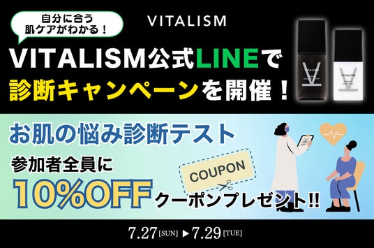 株式会社ヘアジニアス・ラボラトリーズ(本社:東京都渋谷区、代表取締役:津田知明)が展開する、東京・表参道の頭皮ケアクリニックの思いから生まれたトータルケアブランド「VITALISM(バイタリズム)」は、2025年7月27日(日)~7月29日(火)まで公式LINE登録者限定のキャンペーンを開催いたします。