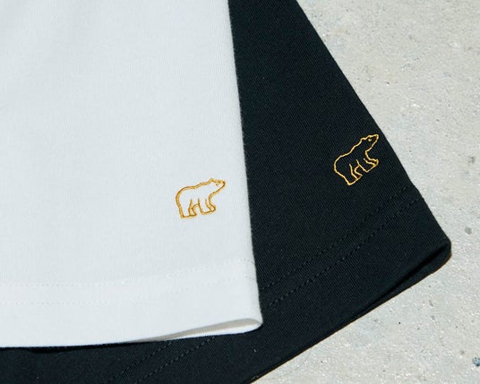 どちらのTシャツにも、襟裏にコラボレーションロゴをプリント。左袖にはくまの縁取り刺繍を入れました。