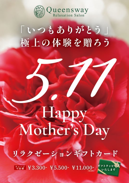 このたび、Queenswayが母の日向けのギフトとしてリラクゼーションギフトカードを発表いたしました。