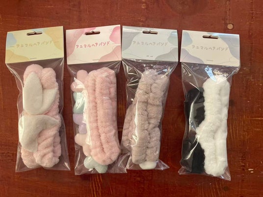 もこもこヘアバンド オリジナル名入れ、シルク印刷、ネームタグ 紙タグ