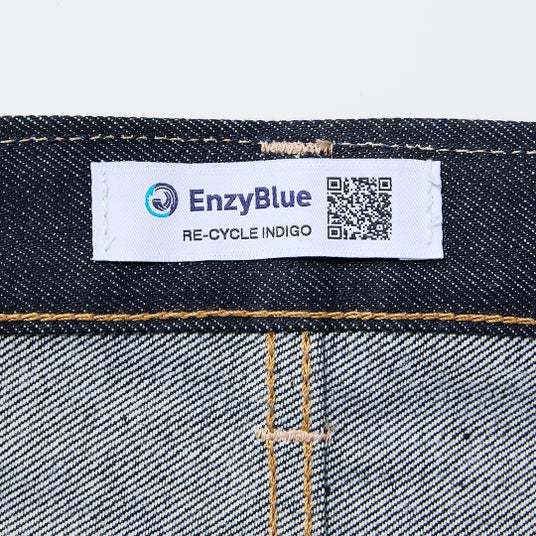 「EnzyBlue」を使用していることを証明するジーンズの内側に取り付けられたネームタグ。