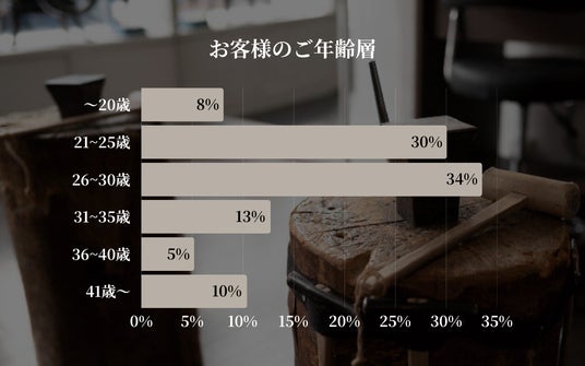 今月の手作りペアリング制作サービスをご利用いただいたお客様の年齢層を集計した結果、26歳から30歳の層が34%と最も多く、引き続き中心的なご利用層となっていることが確認されました。次いで21歳から25歳が30%と僅差で続き、20代全体では実に64%を占めるという結果となりました。20代のカップルに特に支持されているサービスであることが、改めて浮き彫りになっています。