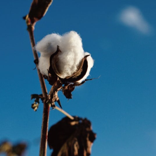 デニム生地に欠かせない原材料である綿。明治時代前半までは日本でも広く綿花の栽培が行われていたが、明治29年の綿花輸入関税撤廃により安価な外国産綿が流通するようになり国内の綿花栽培は衰退していった。現在の日本の紡績工場で織られている生地も基となる綿花はほぼ外国産が主流になっている。