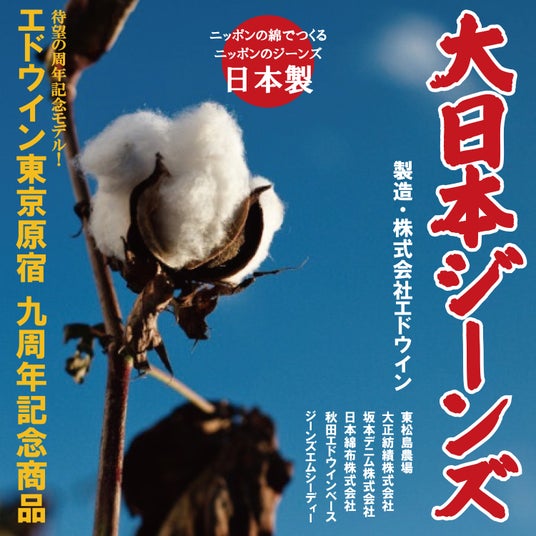 そんな現状の中、エドウインという日本のデニムメーカーとして「原料レベルまで日本製にこだわった、本当のメイド・イン・ジャパン ジーンズをつくりたい」。この理想を胸に、今回のEDWIN TOKYO HARAJUKUの9周年記念「大日本ジーンズ」を創った。