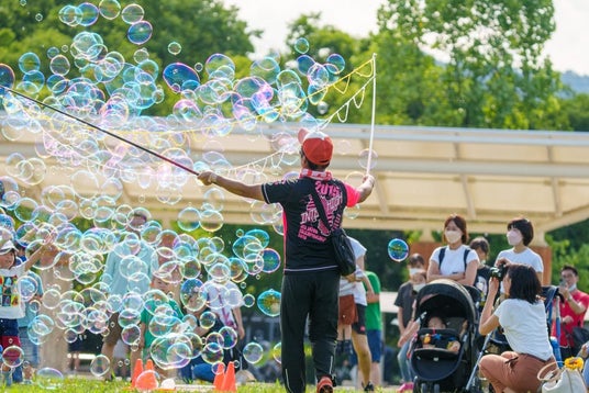 大きなシャボン玉や、シャワーのようなシャボン玉を楽しもう!