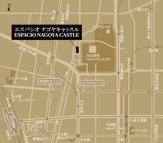地下鉄鶴舞線「浅間町」駅徒歩約10分、地下鉄名城線「名古屋城」駅徒歩約15分