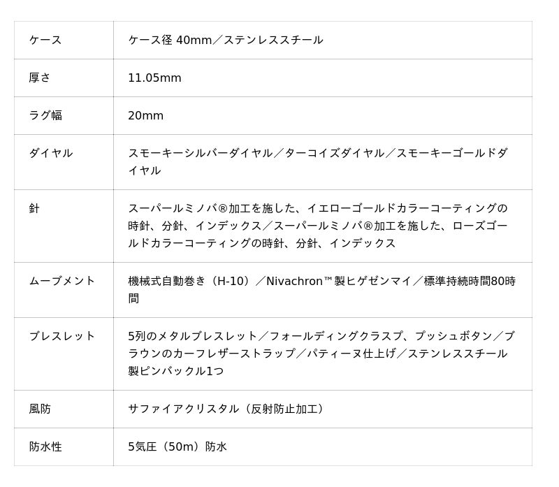 このコレクションには、ハミルトンの自動巻きムーブメントH-10を搭載。80時間の標準持続時間を備え、Nivachron(TM)製ヒゲゼンマイによって信頼性をさらに高めています。反射防止加工を施したサファイアクリスタルと丁寧に仕上げられたケースが、洗練された美しさと機構の持つ魅力を調和させ、タイムピースとして、「ジャズマスター オープン ハート」をより一層引き立てます。