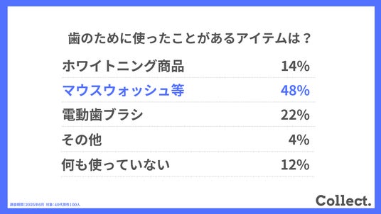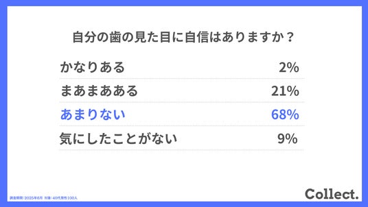 ディーエムソリューションズ株式会社(東証スタンダード上場)が運営するメディア「Collect.(コレクト)」では、40代男性に歯に関するアンケート調査を実施しました。