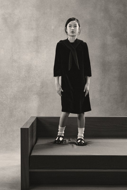 ウィメンズ、メンズ、キッズで構成される本コレクションは、日本の1980~1990年代の文化に対するノスタルジーを起点に、家族の絆や世代を超えたつながり、人間関係の持続性といった普遍的なテーマを探求しています。繊細でヴィンテージ感のあるデザインに、緻密で現代的な視点を融合させたアイテムが揃います。SOSHIOTSUKI がウィメンズおよびキッズを手掛けるのは、今回が初となります。