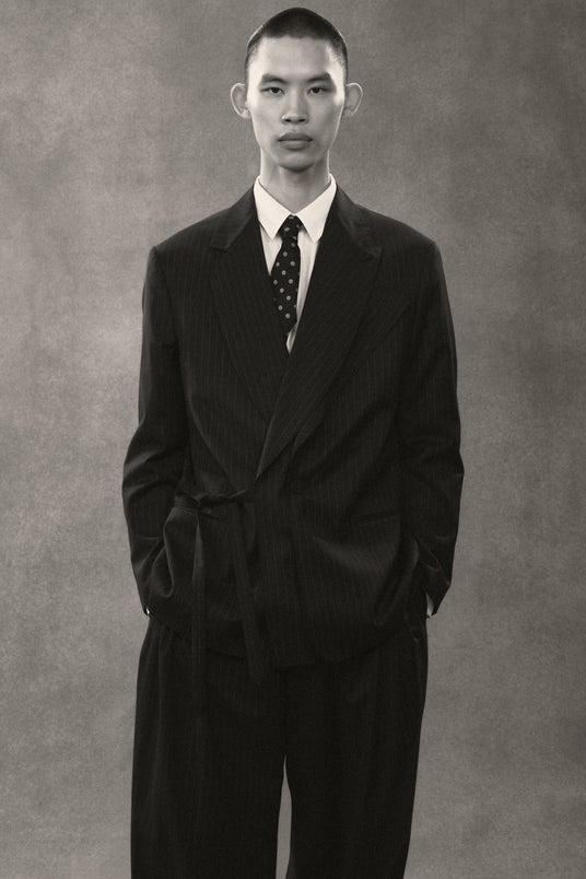 大月氏はカジュアルなアイテムにおいてもあえてフォーマルなルーツを持つ素材を選択。「テーラリングのバランスや仕立ての細部にまで細心の注意を払いました」と語る通り、洗練と柔らかな感情が共存するコレクションに仕上がっています。さらに「このコラボレーションによって、SOSHIOTSUKI単独では実現できなかった表現の幅を広げることができました」とも語り、本プロジェクトを通じて、服を介した感情や絆の表現の可能性を探求しています。