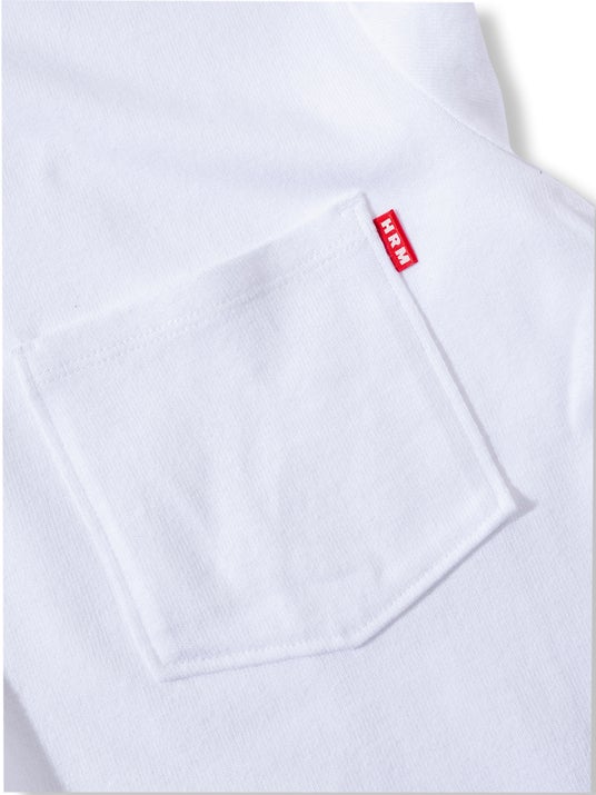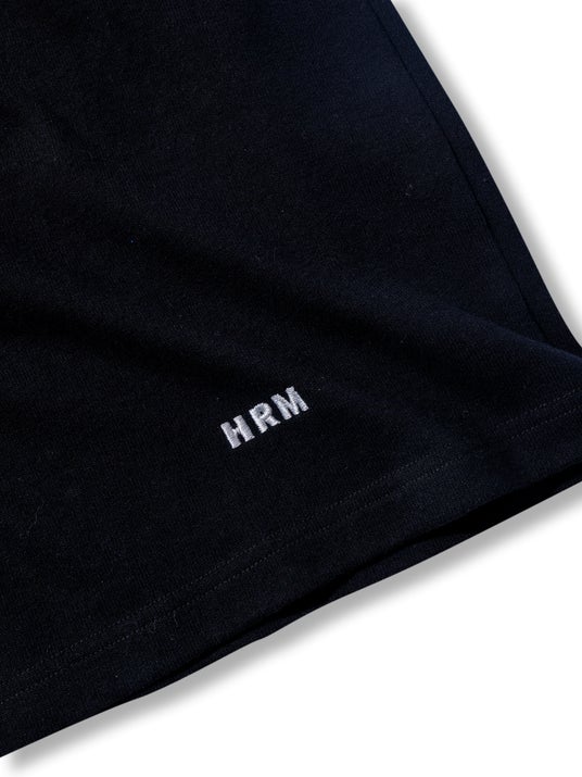 ポケットにはピスネーム、裾にはアイコニックな「HRM」ロゴ刺しゅうを配し、背裏部分にブランド