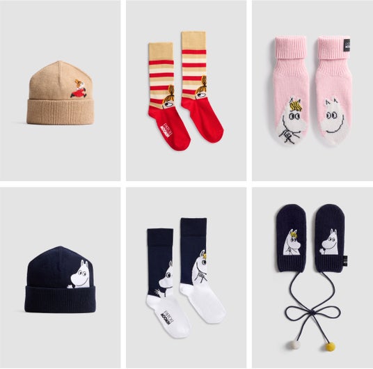コラボレーションの中心には、人気キャラクタームーミントロール、スノークのおじょうさん、リトルミイが描かれ、それぞれのユニークで楽しい個性が各アイテムに反映されています。