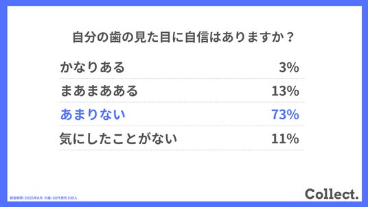 ディーエムソリューションズ株式会社(東証スタンダード上場)が運営するメディア「Collect.(コレクト)」では、50代男性に歯に関するアンケート調査を実施しました。