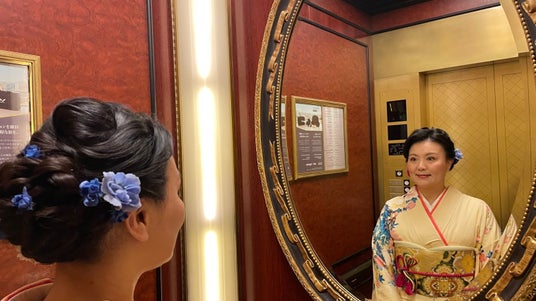 「美と心」への新しい挑戦として、式典に臨むヘアメイクも丁寧に。
