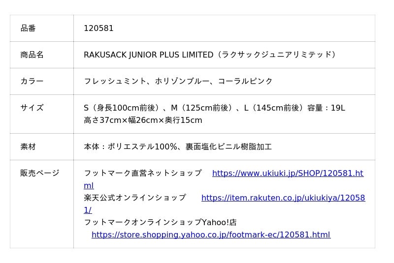 創業80年の学校用品メーカー・フットマーク株式会社(本社:東京都墨田区、代表取締役社長:磯部徳史)は、3月4日(水)より、オンラインショップ限定モデルの小学生向けランドセルリュック「RAKUSACK(R) JUNIOR PLUS LIMITED(ラクサック ジュニア プラス リミテッド、以下リミテッド)」を発売いたします。