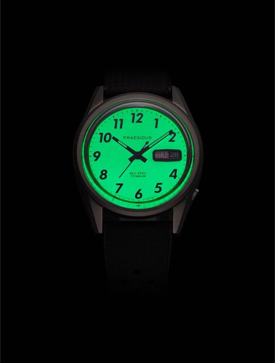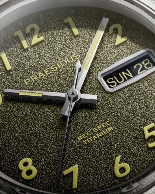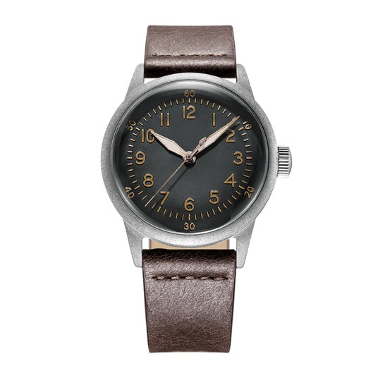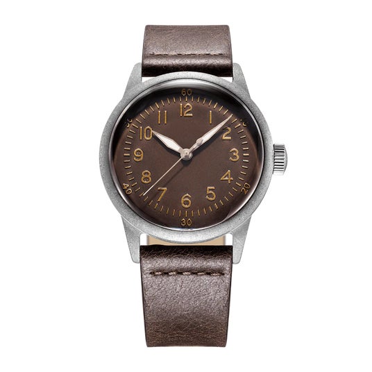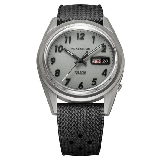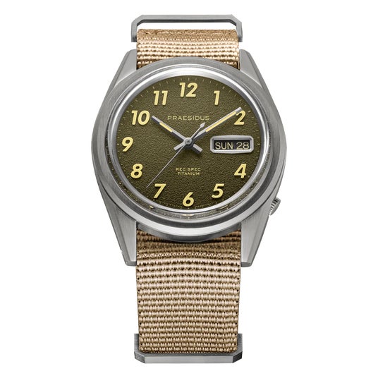 軍用時計の精神を現代に受け継ぐコレクション。38mmのグレード2チタンケースに、4時位置の統合リューズ、NH36自動巻ムーブメントを搭載し、42時間のパワーリザーブとデイデイト表示を備えた堅牢な設計。軽量で実用的なつくりは、過酷な環境でも頼れる相棒。