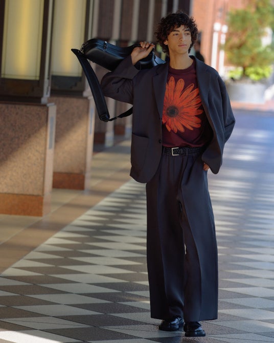 アパレルカプセルコレクションでは、 Paul Smithのテーラリングのエッセンスを活かしてデザインされたオーバーサイズシルエットのセットアップや、フロントに大胆なフラワープリントをあしらった