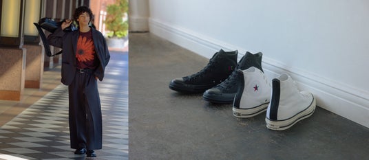 CONVERSEとのコラボレーションでは、リサイクルマテリアルを随所に使用しつつ、履き心地とクラシックな外観を洗練させたオールスターの次世代モデル「ALL STAR(R)〈オールスターアール〉」をベースに、ブラックとホワイトの2色にて展開します。