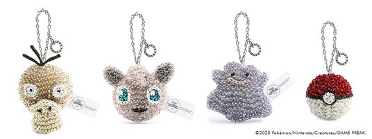 立体的に編み上げた、コダック、プリン、メタモン、モンスターボールのチャームを合わせれば、毎日のコーディネートに楽しいアクセントを加えられます。