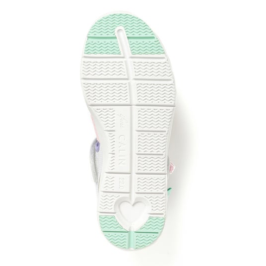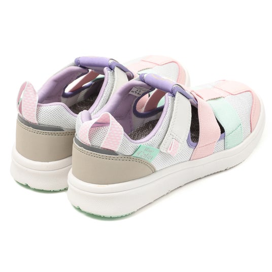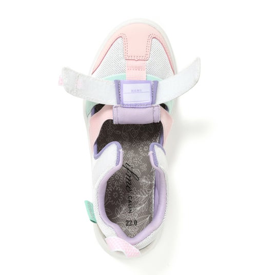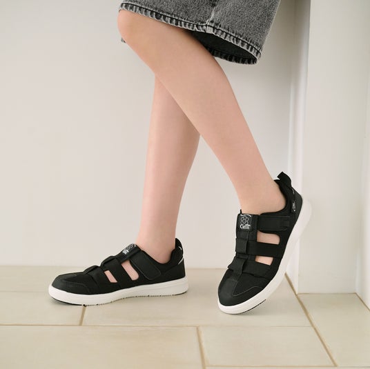 本モデルはスニーカーと同じアウトソールおよびインソールを採用しており(水抜きソールなし)、サンダルでありながらスニーカーのような安定した履き心地を実現しています。中敷きには、かかとをしっかり包み込み足ブレを防止する「ハグインソール」を採用しました。成長期のデリケートな足を守りつつ、おしゃれも思い切り楽しみたいという親子のニーズに応える一足です。
