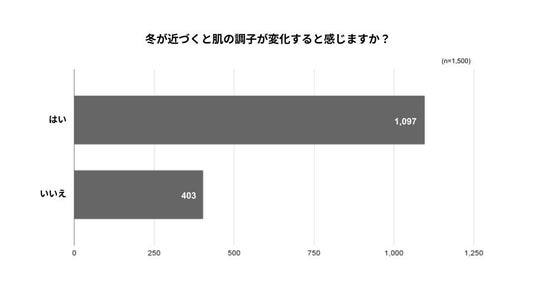 約73%が冬が近づくと肌の調子に変化を感じている