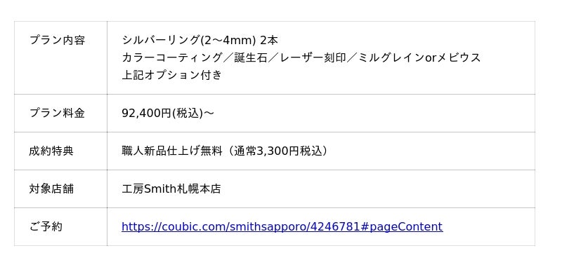 株式会社一宝(所在地:北海道札幌市)が運営する、北海道の手作り結婚指輪・婚約指輪・ペアリング工房「工房Smith札幌」は、結婚25周年を迎えるご夫婦を対象とした「銀婚式アニバーサリープラン」の提供を本格化します。近年高まる銀婚式の需要に応え、指輪を“選ぶ”のではなく、ご夫婦で共に“創る”という特別な体験を提供いたします。