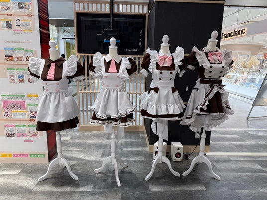 あっとほぉーむカフェオリジナルメイド服の展示も