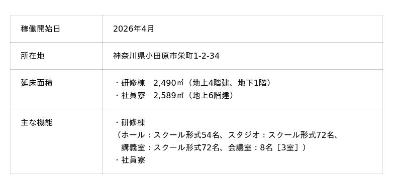 人材開発センターは、2025年10月に研修棟が、2026年3月に社員寮が完成し、両施設の完成をもって同年4月より本格稼働を開始しています。