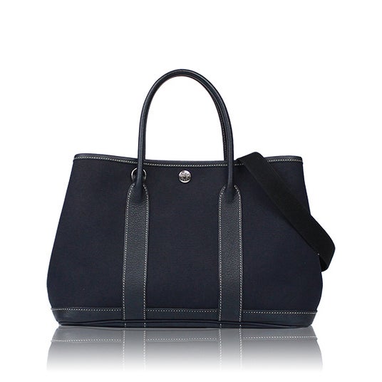 エルメスの中でも日常使いに適した「ガーデンパーティ」は、シンプルながら上質さが際立つ定番トートです。丈夫なキャンバス地にレザーをあしらった構造で、カジュアルにもきれいめにも合わせやすいのが魅力です。開口部はスナップボタン仕様で、必要に応じてサイドを広げられる柔軟なデザインになっています。ブラックはどんな装いにもマッチし、オン・オフ問わず万能に活躍してくれます。