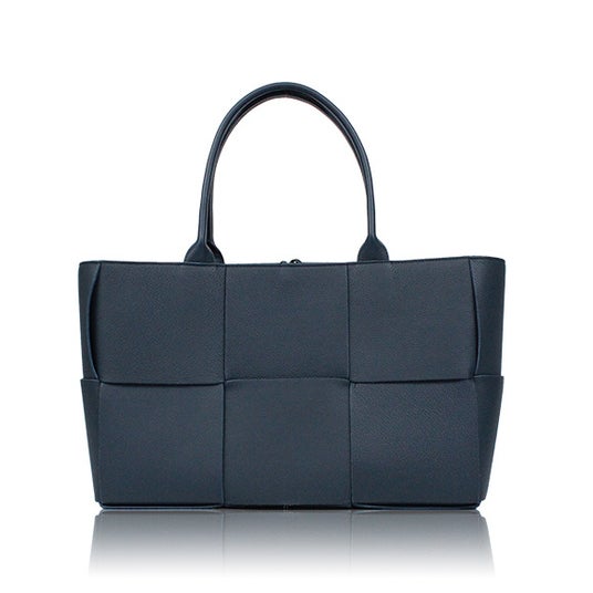 アイコニックなイントレチャート(編み込み)を最大限に活かした「ザ・アルコトート」は、ボッテガ・ヴェネタを代表する存在感のあるバッグです。大きめの編み込み幅がモダンで洗練された印象を与え、シンプルな装いにプラスするだけでスタイリングを格上げしてくれます。ネイビーはブラックよりも軽やかで、秋のシックな色合いに自然に馴染む万能カラーです。収納力も高く、デイリーから旅行まで幅広いシーンで活躍します。