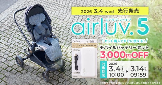 コマースメディア株式会社(本社:東京都豊島区、Poled日本総代理店)は、赤ちゃん用送風機付きクールシート「airluv.(エアラブ)」の2026年最新モデル「airluv.5(エアラブ5)」を、本日2026年3月4日(水)より公式オンラインストアにて先行発売いたします。