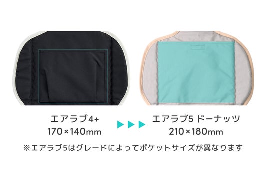 エアラブと保冷剤を併用することで、気温が高い日のお出かけもより涼しさを感じていただけます。最新モデルでは保冷剤ポケットを約1.3倍に拡大し、より様々なサイズに対応しました。