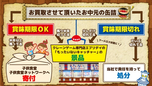 2.賞味期限が間近、切れてしまっている缶詰→もったいないキャッチャーの景品として再利用