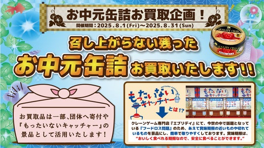 「食品ロスをゼロへ!期限切れの缶詰を有効活用、買取キャンペーン」 8月1日(金)~8月31日(日)実施!どんな缶詰でも100円で買取します!!