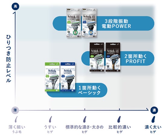 さらに、高機能モデルとして人気の「極(きわみ)」シリーズがHYDRO(ハイドロ)ブランド傘下に加わり、ブランド全体での機能強化と選びやすさを追求。日本カミソリ市場シェアNo.1*1ブランドとして、男性一人ひとりの肌とヒゲに寄り添う新しいシェービング体験を提供します。