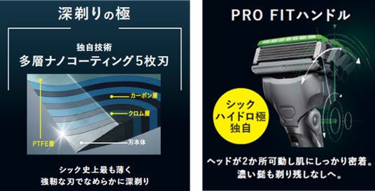 また、「シック ハイドロ極」では、ヘッドが2か所可動するハンドルを設計(PRO FITハンドル)。顔のラインにもしっかり密着し、濃いヒゲや寝ているヒゲも逃さずシェービングし、剃り残しなしへ。