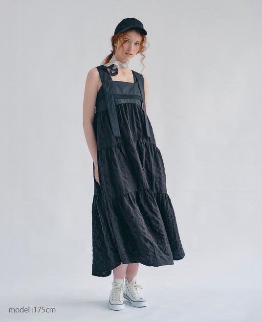 体型カバーも叶うふんわりティアードシルエットと肩紐デザインで、1枚でもコーディネートを華やかに。さらっと軽い着心地でシーンレス・シーズンレスで身に付けられます。