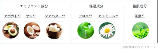 2:アボカド油(エモリエント成分) 3:ヤシ油(エモリエント成分)
