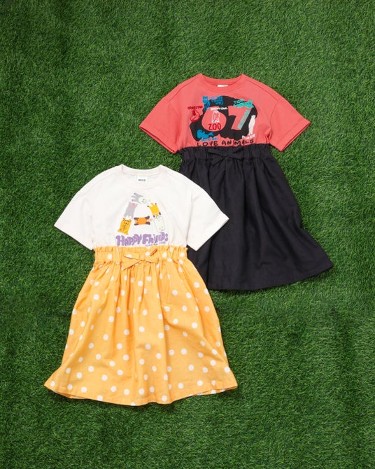 Tシャツとスカートが一体になったドッキングデザインで、着るだけでコーディネートが完成するワンピース。ウエストのリボンや動物たちのプリントがアクセントになっていて、旭山動物園ならではの魅力をたっぷり詰め込んだ1枚です。