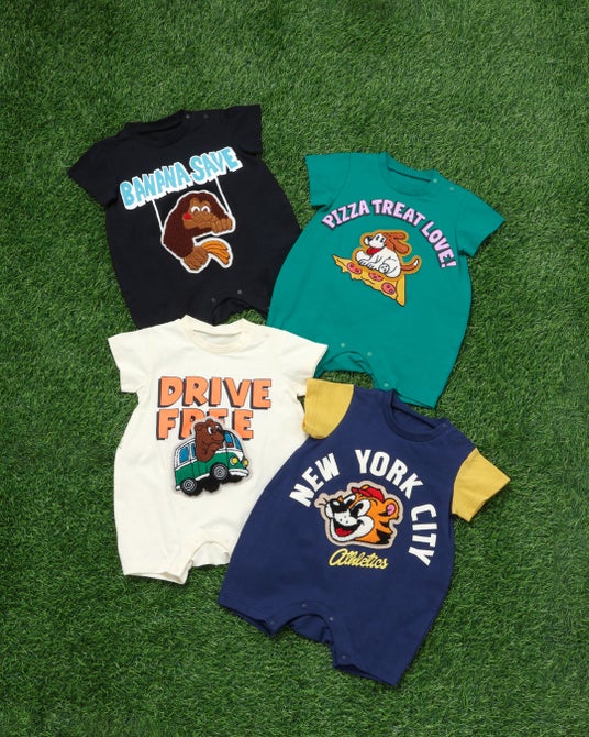 Tシャツとおそろいができるロンパスも。きょうだいやお友達とリンクコーデもおすすめです。