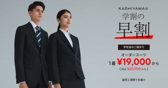 これからスーツを着る機会が増える方や、今まで既製品や、他社オーダーを着用されてきた方に『KASHIYAMA』だから提供できる価値を体験していただけるお得なキャンペーンです。